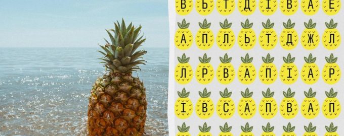 Obrazek przedstawia losowe litery, wśród których znajduje się właściwe słowo. Może ono znajdować się poziomo lub pionowo, ale nie po przekątnej. Do znalezienia „ananasa” potrzebny będzie bystry wzrok, koncentracja i pracowitość.