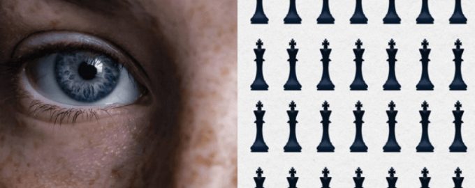 Na obrazku znajduje się wiele rzędów figur szachowych i jest jeden nis – wśród tej dużej liczby figur jest jedna bardzo dziwna. Ten dziwny król musi zostać znaleziony w ciągu 5 sekund. Z pewnością poradzisz sobie z tym zadaniem w takim czasie, jeśli masz wysokie IQ.