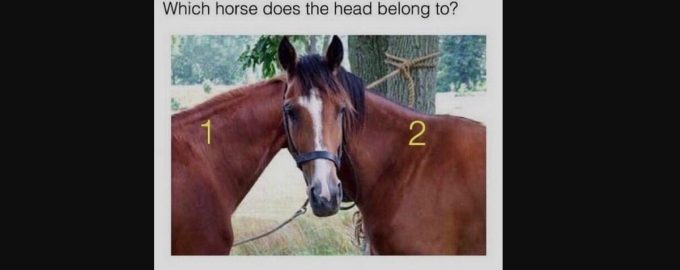 Złudzenie optyczne przedstawia dwa konie, z których jeden odwrócił się, by spojrzeć w kamerę. Wyzwanie polega na ustaleniu, który koń patrzy na ciebie.